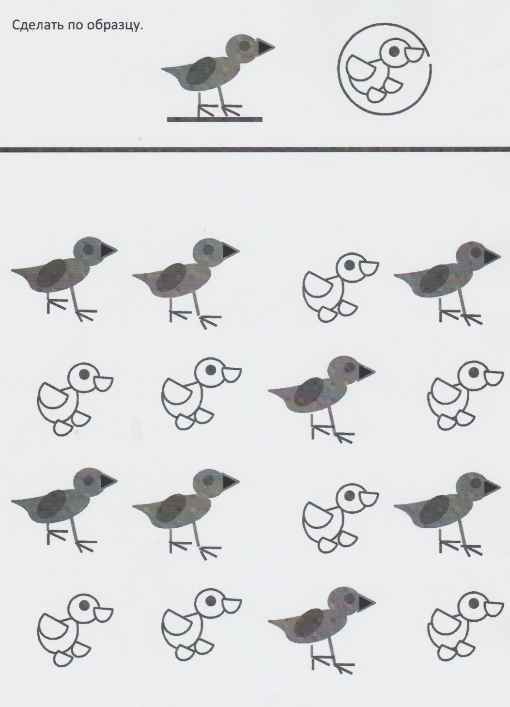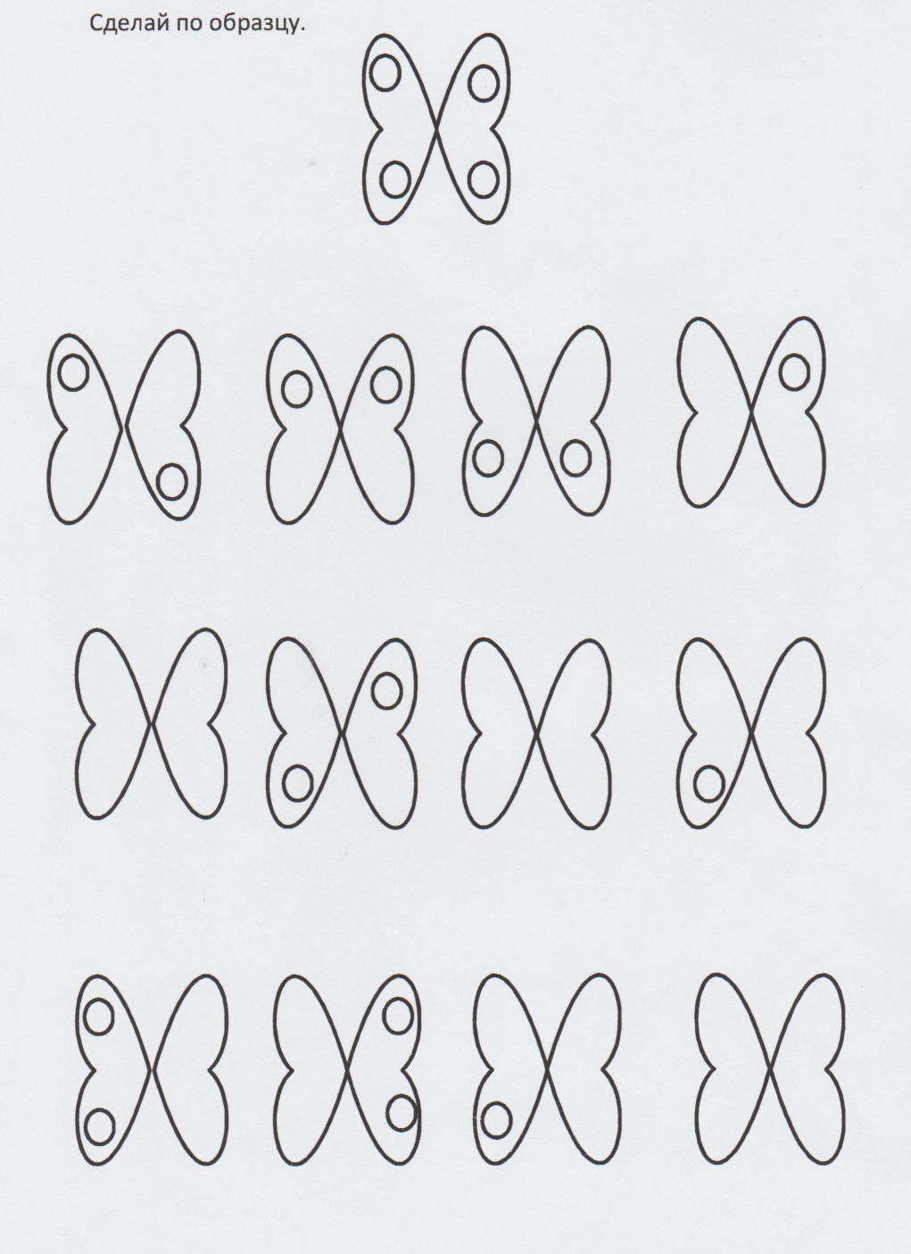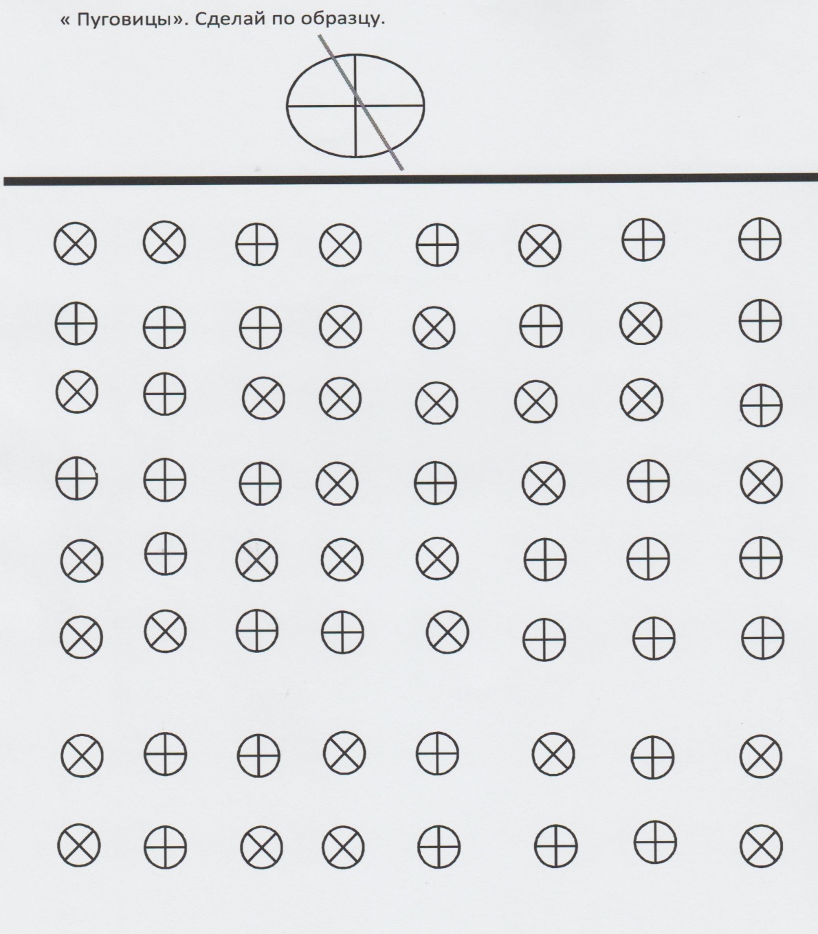 Методические примечания. Посмотреть внимательно на пуговички и найти отличия. Зачеркнуть только пуговички из образца. Зачеркивать пуговички по строчкам, начиная с первой строчки, слева направо.