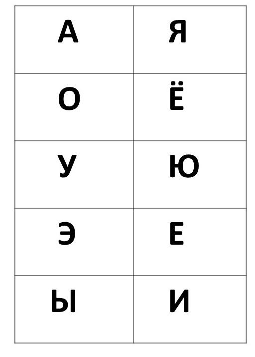 В русском языке 10 гласных букв. У каждой гласной буквы есть своя пара. А-Я, О-Ё, У-Ю, Э-Е, Ы-И. Как мы видим из таблицы, всего 5 пар гласных.