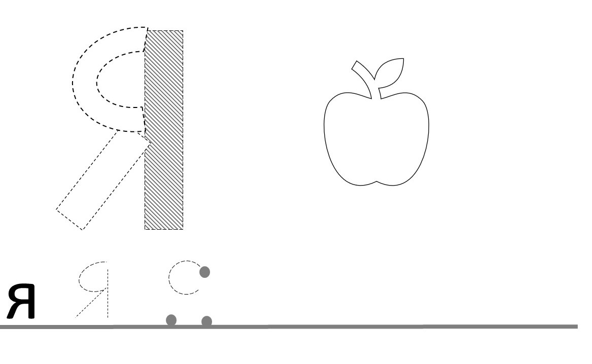 Ответить на вопросы: из скольких элементов состоит буква «Я»? Почему рядом с буквой «Я» нарисовано яблоко?