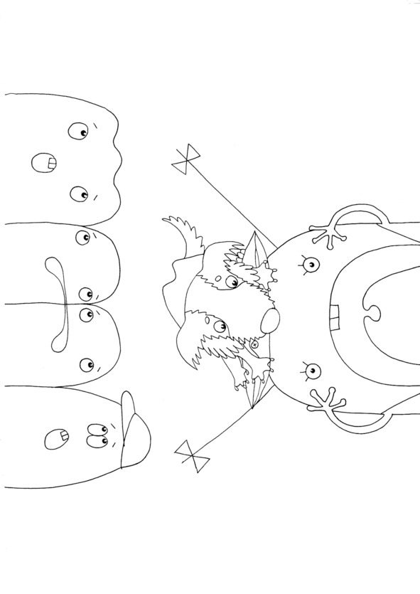 – Караул! – заверещала Молли, ничего не видя вокруг из-за налипшей пасты. – Мятная конфета мнёт мне мня! Бананы! Нападение леденцов! Правый фланг – вперёд! Ого-о-онь! Мню-мня-пли! – и она начала выплёвывать банановую кашу прямо на пол.