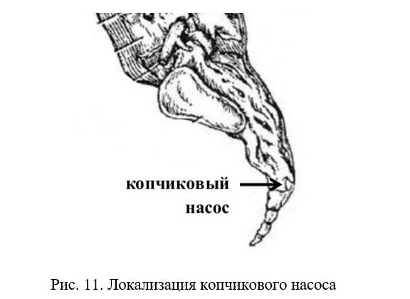 Согласно представлениям древних даосских мудрецов, движение этой жидкости, а с ней и энергии ци обеспечивают 2 насоса: копчиковый (рис. 11) и внутричерепной.
