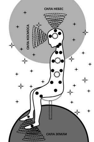 В процессе жизнедеятельности мы постоянно получаем и используем жизненную (приобретенную) энергию ци. Основными ее источниками являются пища, воздух и вода. Кроме этого, мы черпаем энергию из внешних потоков: силы Вселенной, Космоса и Земли, даже если этого не осознаем (рис. 2).