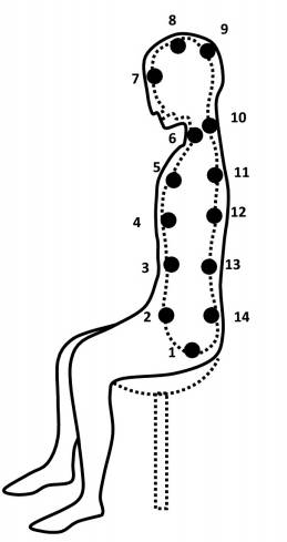 Точка надпочечников (цзичжун). Мини-насос. Локализован около 11-го грудного позвонка.