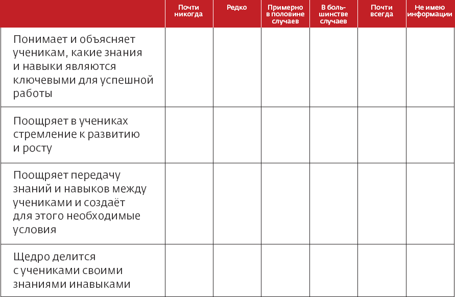 В качестве конкретного примера оценки можно рассмотреть анкету обратной связи для оценки 360 (второй критерий) (табл. 3).