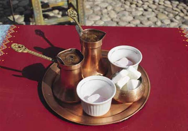 кафа готовится в турке (джезве). При этом заваривается она по-европейски: кофе засыпают в кипящую воду, а не наоборот, как принято в Турции. Обычно кладется одна чайная ложка на чашку кофе. Сахар не добавляется – только по желанию. Большинство сербов пьет кофе горьким. Но в любой кафане к кофе вам обязательно подадут стакан воды и лукум, вафельку или шоколадку. Если придете в гости в сербскую семью, то на столе обязательно окажутся еще и «слаткиши»: мелкая разнообразная выпечка и сладости, а вместо воды вам могут предложить «сок от руже», «сок от зове» или «киселу воду». Это, соответственно, вода с сиропом из розы, с сиропом из цветов бузины и минеральная вода.