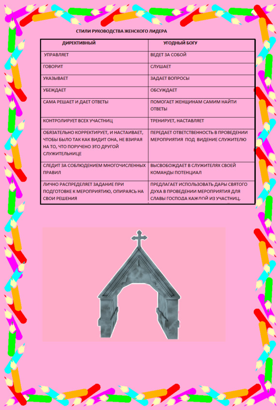 Одни лидеры вдохновляют, а другие одним своим видом дают понять, что все держат в своих руках, и чтобы достигнуть цели, нужно лишь следовать за ними. И часто дают понять кто здесь главный. Внося ненужные правки в продуманный, промоленный кем – то план мероприятия, чтобы последнее слово было за ними. Бог использует все особенности характера лидеров, которых Он призвал на это служение. Сейчас я не говорю что плохо, а что хорошо, ведь в этом придется разобраться каждому из нас, чтобы понять приносим мы славу Господу своими дарами и талантами, своим характером или разрушаем служение, которое Бог доверил нам.