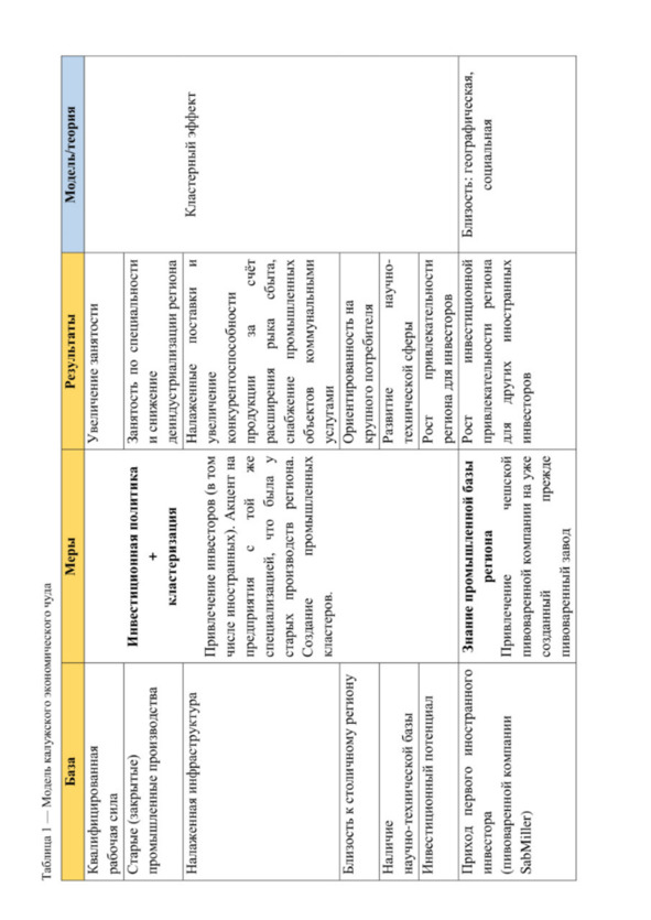 В результате проведенного исследования особенностей «экономического чуда» Калужской области, были выявлены аспекты, в которых работают некоторые ключевые теории региональной экономики.