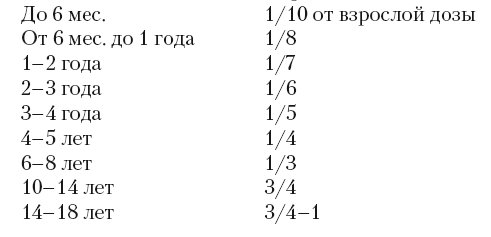 Следующие рекомендации по расчету среднетерапевтической дозы в зависимости от возраста: