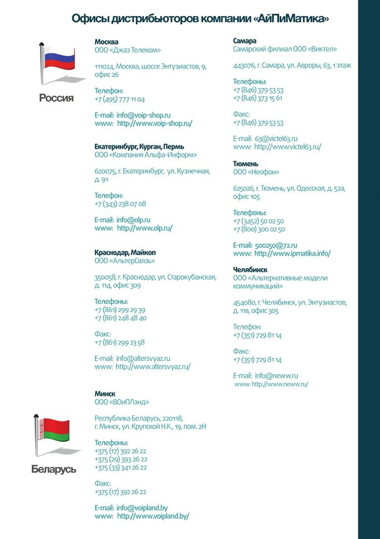 • поддержка VLAN и TOS, позволяющих поддерживать высокое качество связи в больших корпоративных сетях