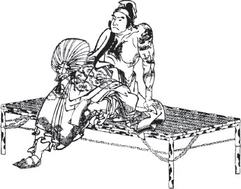 – Каков наглец! – вскричала О-Куни. – Как ты смел среди ночи приблизиться к женским покоям?