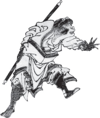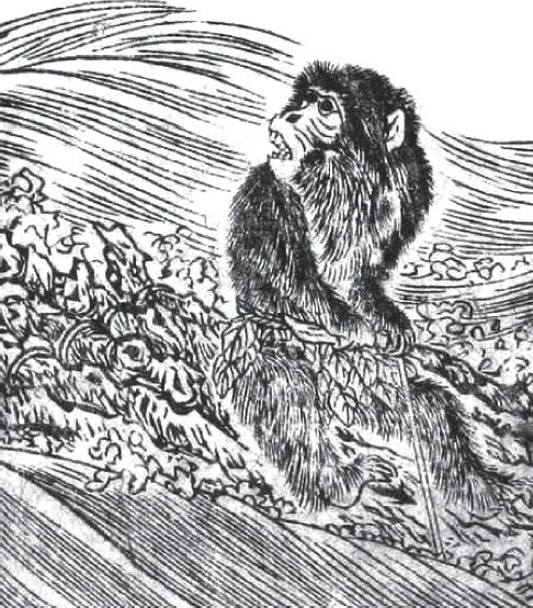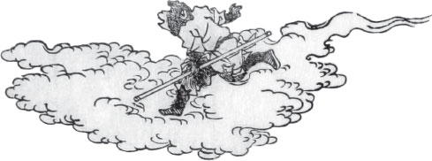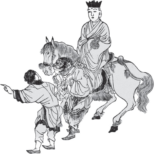 Сунь Укун повертел головой – вокруг ни души, да и нечистью в башне тоже вроде бы не пахнет. Однако ж голос раздался где-то совсем рядом. Сунь Укун не знал, что и думать, как вдруг увидел человека с железным трезубцем. Он стоял за квадратным зеркалом с крюком в виде изогнувшего спину зверя. Человек снова окликнул Сунь Укуна: