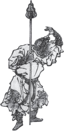 Как раз в тот день, когда Сунь Укун появился в Мире Древних, закончилось возведение башни, и к Зеленой Жемчужине пришли с поздравлениями госпожа Сиши[26] и девица Сысы. Зеленая Жемчужина очень обрадовалась и поспешила устроить в новой башне пир в честь любезных гостей. Девица Сысы сидела посередине, Зеленая Жемчужина – по правую руку от нее, а госпожа Сиши – по левую. Прекрасные собой прислужницы подносили им вино и собирали для них букеты цветов. И тут Сунь Укуну пришел в голову хитрый замысел. Он принял облик прекрасной девы и смешался с толпой служанок. Как же он выглядел?