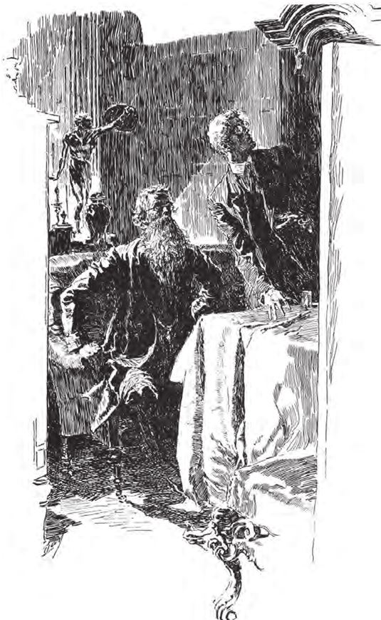 Вернулся он с крупным, довольно полным пожилым джентльменом, темноволосым и неопрятным. Низко опущенная голова и выпуклый широкий лоб делали посетителя похожим на быка. В руках он держал черный саквояж – необходимый атрибут профессии врача.