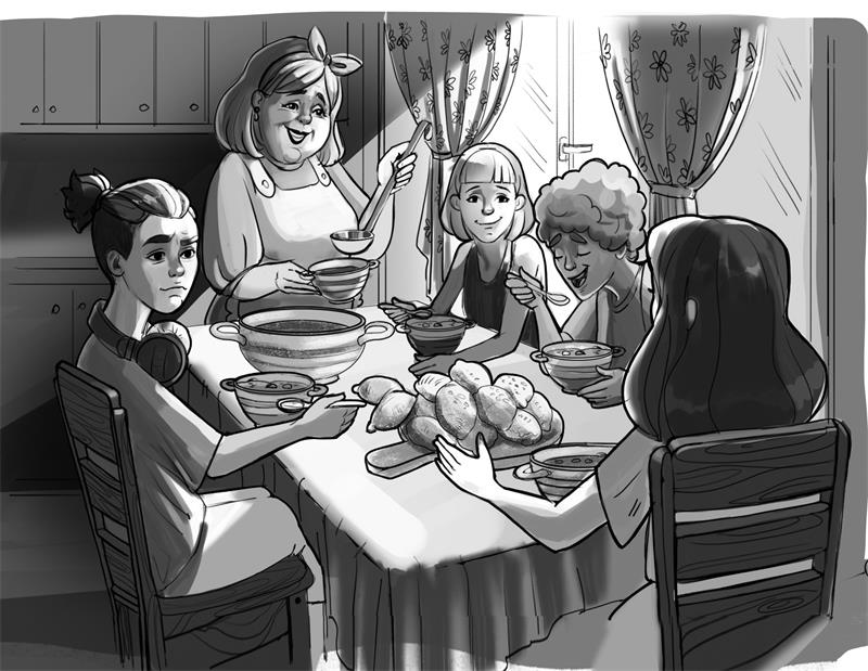 – Да, в принципе, неплохо приготовлено, но я бы немного перца добавил и помидор. Но добавки не хочу, – ответил Миша, протягивая руку за четвёртым пирожком.
