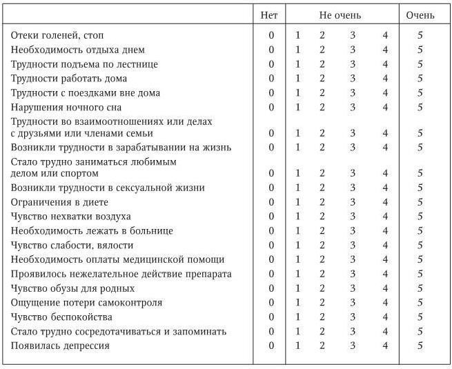Исследование качества жизни проводят с использованием стандартизированной анкеты «Опросник Миннесотского Университета для больных с сердечной недостаточностью» (Minnesota Living with Heart Failure Questionnaire), разработанного T. Rector и J. Cohn. Выбор этого опросника обусловлен его высокой специфичностью для больных с недостаточностью кровообращения, а также высокой чувствительностью и воспроизводимостью.