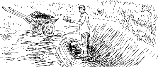 Для выкапывания пруда (даже небольших размеров) нередко сначала используют экскаватор на базе МТЗ «Беларусь» или современный мини-экскаватор, а затем склоны стенок ложа докапывают вручную лопатой. На наклонной местности полностью все работы тяжело выполнять вручную. Вам понадобятся тачка, лопата, грабли, планка-правило, уровень, большая и малая рулетка, шпагат или бечевки, колышки, молотая известь или что-либо другое для обозначения контура.