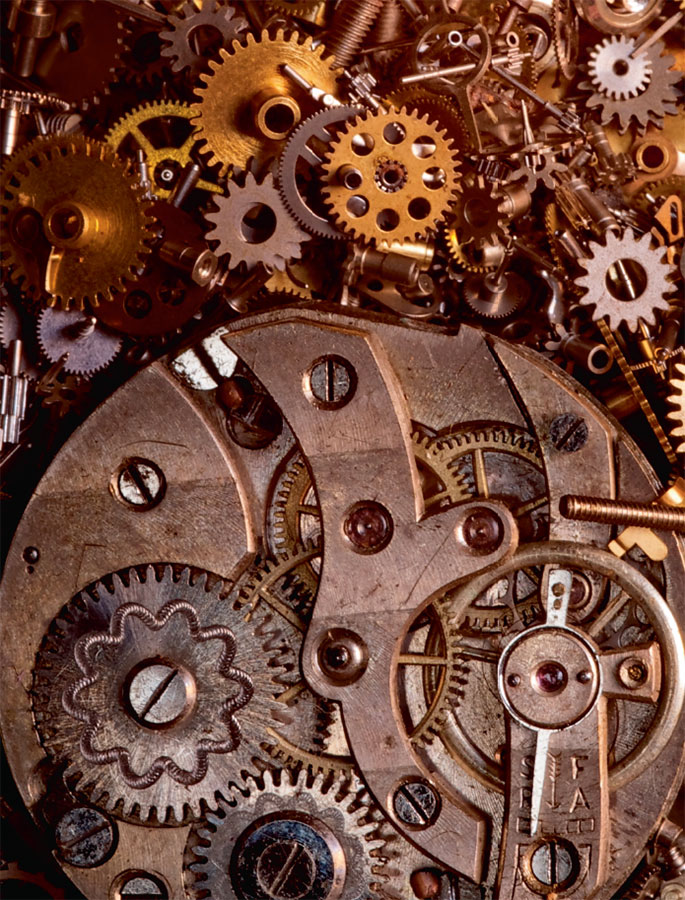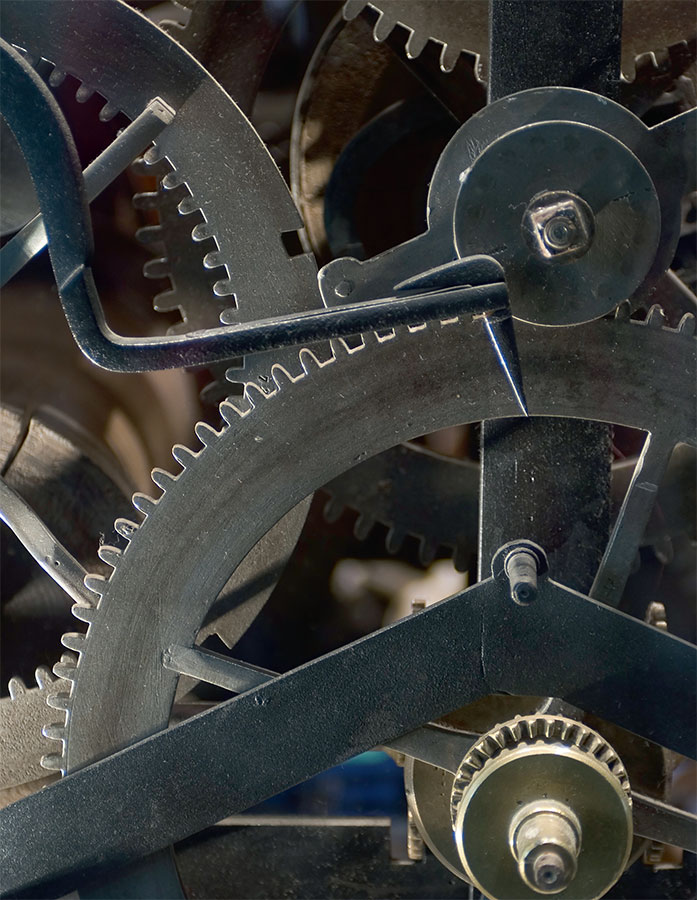 • Система зубчатых колес-шестеренок, которые соединяют источник энергии со спусковым механизмом.