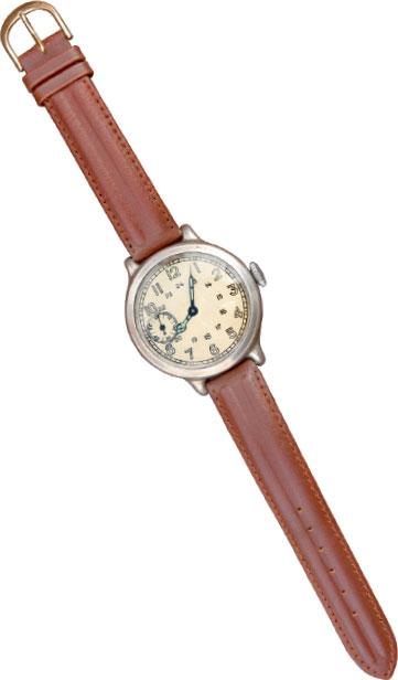 «Шишечка» сбоку на этих наручных часах – верхушка заводного вала, соединенного с ремонтуаром. С ее помощью можно было как завести часы, так и перевести стрелки
