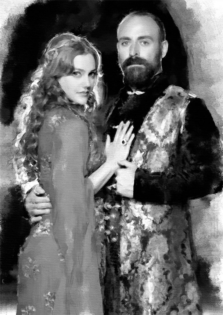 Мерьем Узерли в роли Хуррем и Халит Эргенч в роли Сулеймана в турецком сериале «Великолепный век»