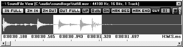 Если требуется поместить в список выделенных регионов файл полностью, можно поступить проще. Выполните команду Open SoundFile And Create Region (Открыть звуковой файл и создать регион) из меню File. Файл будет открыт в окне SoundFile View и сразу помещен в список Regions View.