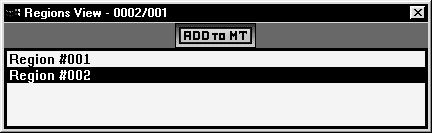 Теперь для загрузки фрагментов в канал вам надо сделать следующее. В окне MultiTrack View пометьте канал, в который будет добавлен звуковой фрагмент. В окне Regions View установите курсор на очередном фрагменте. Нажмите кнопку ADD to MT (Добавить в окно каналов MultiTrack View) и перейдите к следующему фрагменту (региону).