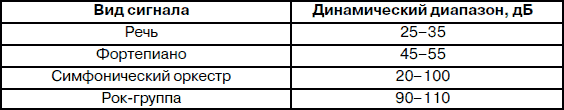 Таблица 1.1. Динамические диапазоны некоторых акустических сигналов