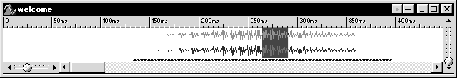 Теперь сделайте активным вновь созданное пустое окно. Если титульная строка этого окна закрыта другими окнами, воспользуйтесь меню Window. Выберите команду Paste из меню Edit, и фрагмент появится в новом окне. Для прослушивания нажмите кнопку Play, после чего зазвучит уже новый файл.