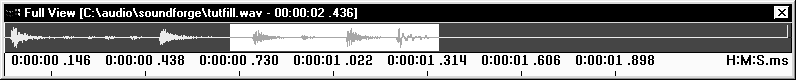 Если щелкнуть правой кнопкой мыши в любом месте окна Full View, начнется воспроизведение звукового файла от текущей позиции курсора. Повторный щелчок правой кнопкой приостановит воспроизведение. Щелчок левой кнопкой мыши перемещает позицию курсора. Щелчок левой кнопкой в этом окне во время воспроизведения перемещает курсор к точке нажатия, и воспроизведение продолжается уже с этой точки.