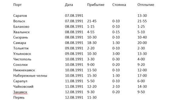 Пока папа с Иваном ушли определяться по поводу подселения, я отправился искать расписание работы видеосалона. Однако, прежде чем найти его в холле главной палубы, я наткнулся на расписание нашего маршрута. Оно было совсем не похоже на расписание круизного теплохода. Длительных стоянок после Саратова значилось всего две – в Ульяновске и Чайковском. Получается, раз в два дня: наверняка, чтобы пополнить провизию.