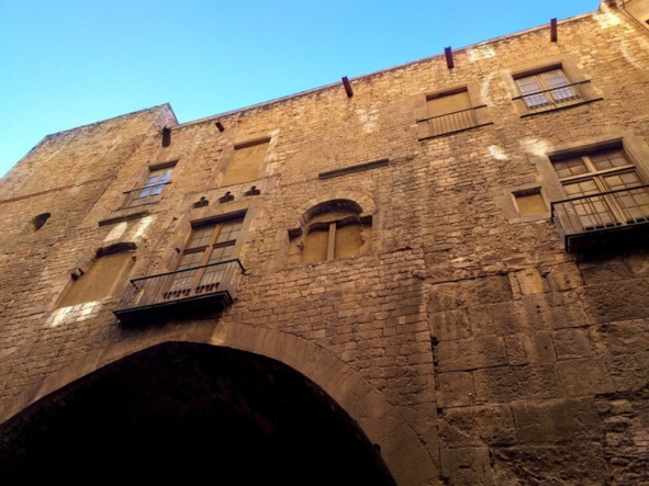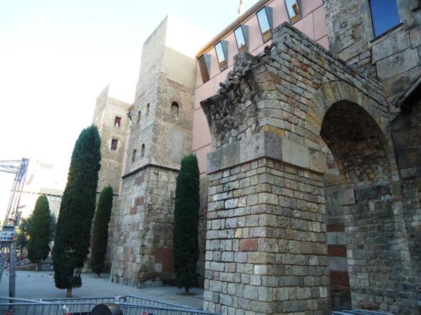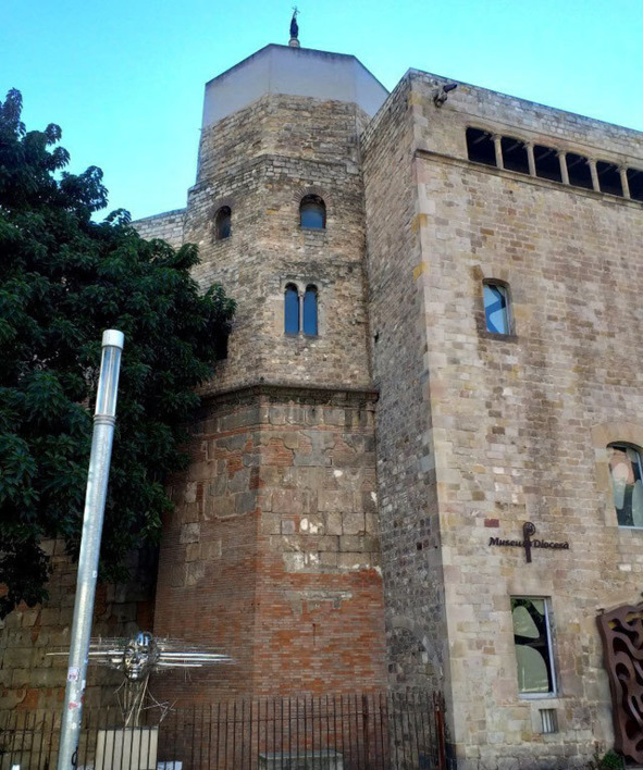 Две прямоугольные оборонительные башни, одна полукруглая, кладка из массивных блоков песчаника, фрагмент акведука – перед нами не что иное, как римское наследие Барселоны, к которому, соственно, и прилепилась в средневековье резиденция барселонских дьяконов.