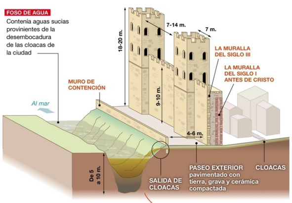 Этот участок стен интересен также и тем, что позволяет наглядно представить себе ту спешку, в которой укреплялись стены в 3-ем веке нашей эры. Недавние археологические изыскания позволили установить, что в результате набегов франков и германских племен многие участки первой стены были разрушены, и потому вторую возводили в поистине «авральном режиме».