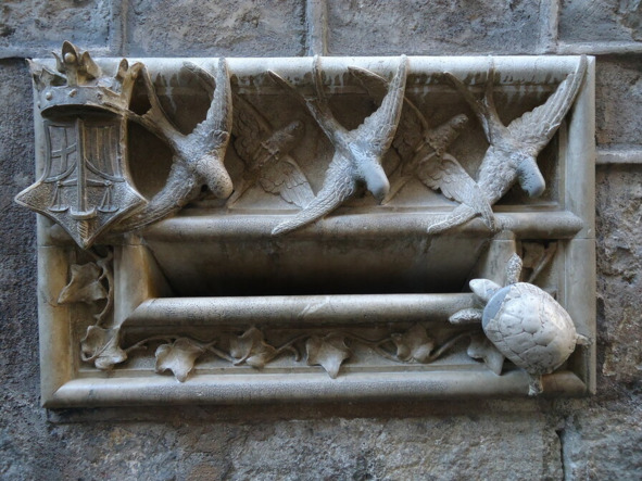Почтовый ящик на фасаде дома Архидьякона в Готическом квартале Барселоны, выполненный в стиле «модерн» и украшенный изображением ласточек, плюща и черепахи – деталь, неизменно привлекающая внимание туристов своим необычным – а точнее, непонятным, даже загадочным – видом. Давайте же разберемся, что к чему.