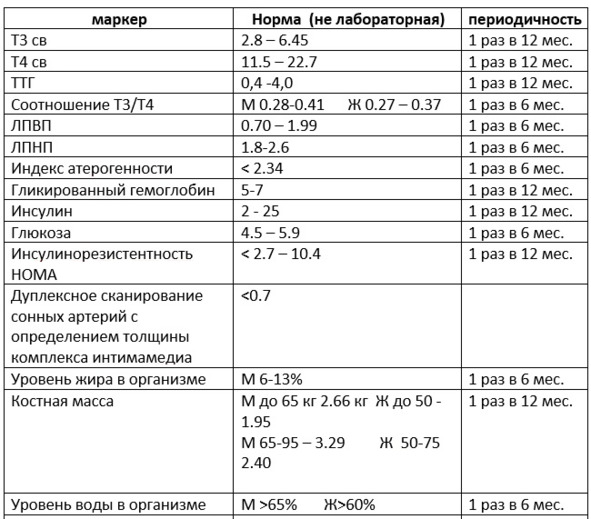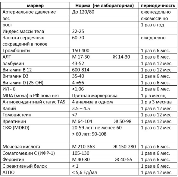Определяет не только параметры контроля основных биомаркеров старения, но и состояние организма и характер течения сопутствующих заболеваний. Дополнительные обследования назначает специалист. То есть, прежде чем что-то принимать из препаратов или вносить изменения в рацион питания и образ жизни, нужно понять, как это соотносится с заболеванием, состоянием и теми препаратами, которые человек уже принимает.