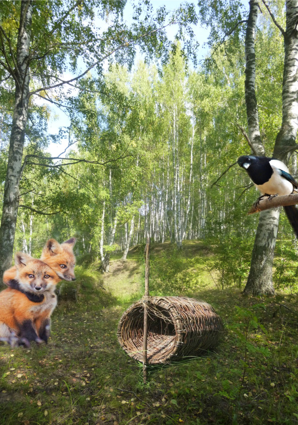 Бабушка протянула лисичке Рыжее Солнышко странный предмет, сплетённый из ивовых прутьев, чем-то напоминающий корзину.