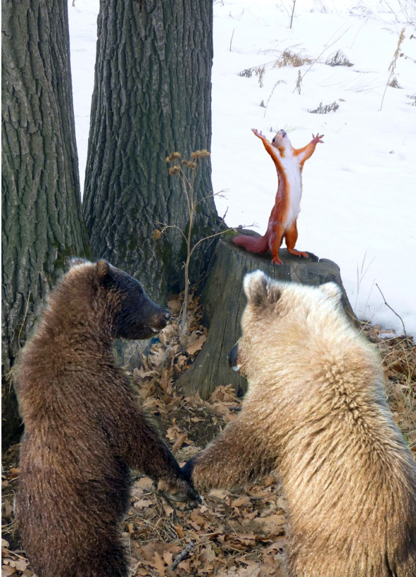 Вслед за ними движение повторила и стайка бельчат. Они развели лапки в стороны со словами: – Ку!