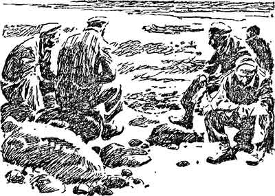 Очень трудно пристать к скалистому берегу: он весь в белом кипении. Возвратная сила волны отталкивала лодку, отторгала ее от острова, будто хотела помешать высадке Этьена.
