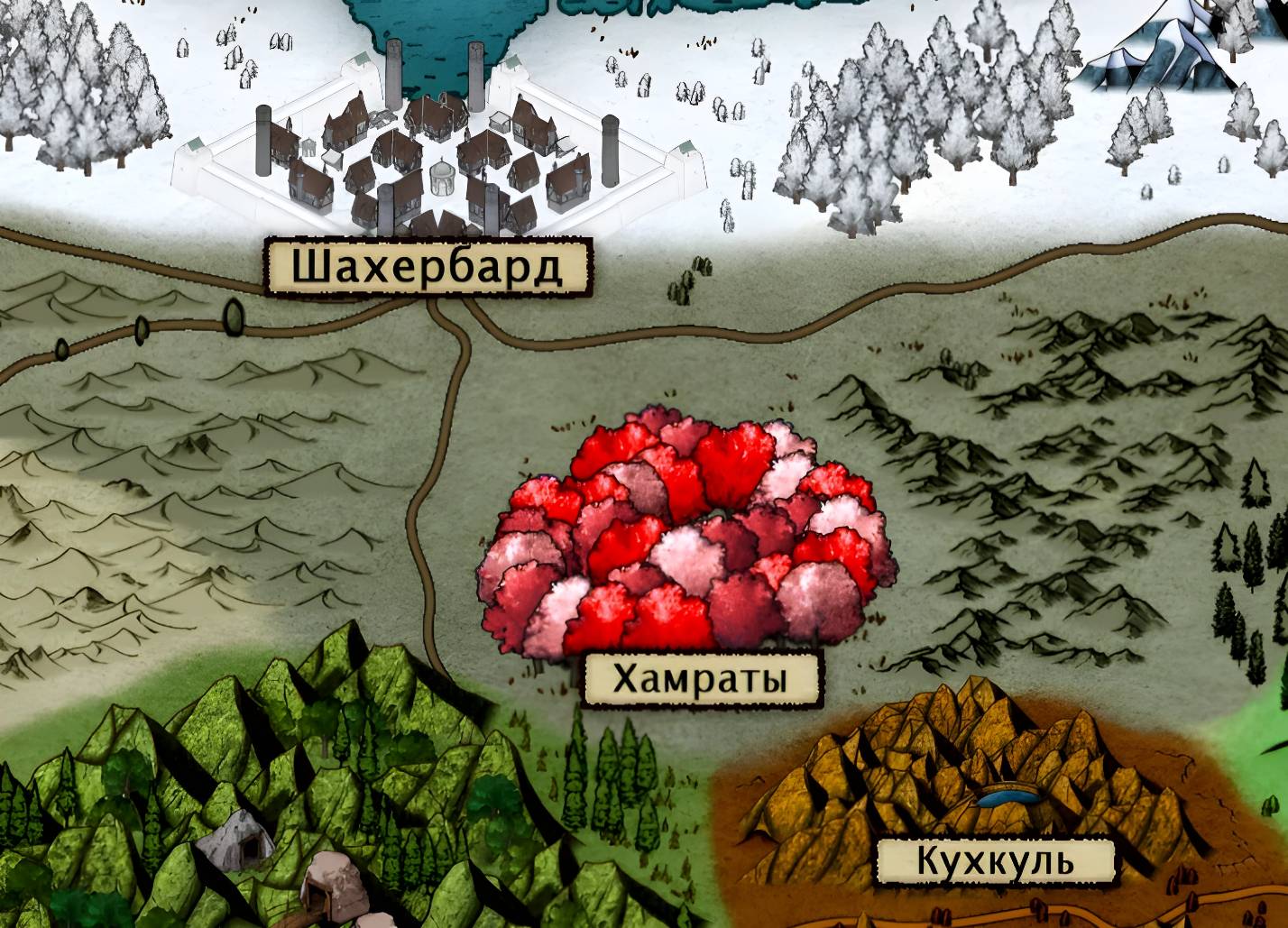 Караван уже подходил к большим каменным вратам известного зимнего города. Зиннур и Мусагид остались на возвышенности, провожая взглядом больших короткошёрстных бурых слонов. Перед ними открывался великолепный вид на город, в котором всегда падал снег. К северу от города располагалась бухта, которая входила в огромное море. А на юге-востоке города начинались горы, которые шли далеко на десятки километров. Именно из-за необычного расположения города, где всегда пересекались северные бризы с южным горным ветром, в самом городе всегда выпадали осадки в виде чистого снега. Правда он не всегда долго залеживался, но и не всегда моментально таял на различных поверхностях города. Поэтому этот город и стал известен как город мягкого холода – Шахербард.