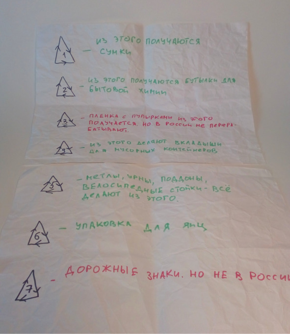 – Записка с кодами переработки.
