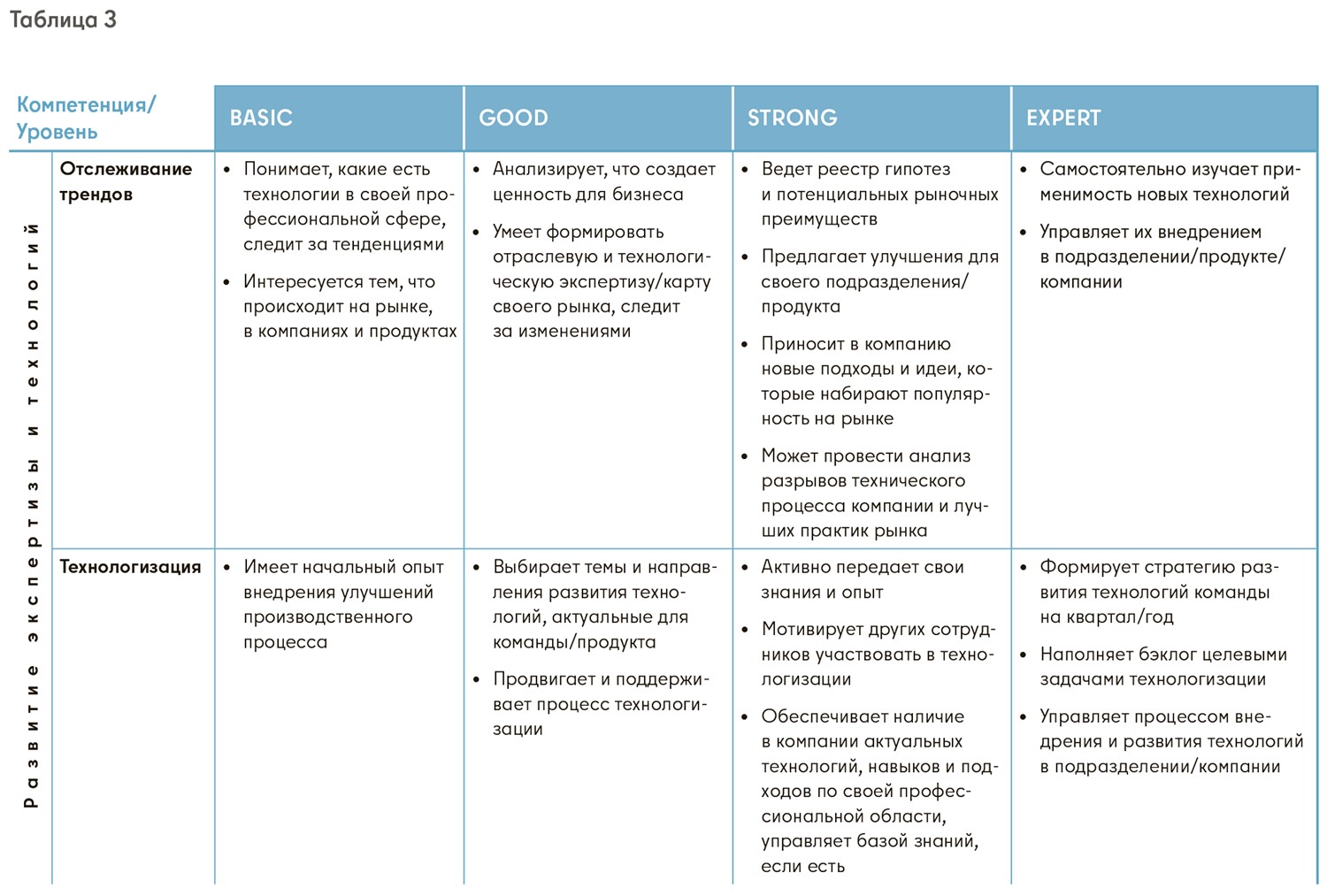 В нашем варианте для каждой компетенции даны описания четырех уровней мастерства – от базового до экспертного, каждому уровню соответствуют проверочные поведенческие индикаторы.