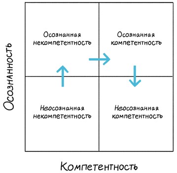 Вместе эти четыре стадии образуют так называемую модель развития компетенций Берча – Бродвелла, которой начиная с 1970-х пользуются наставники и тренеры в самых разных сферах.