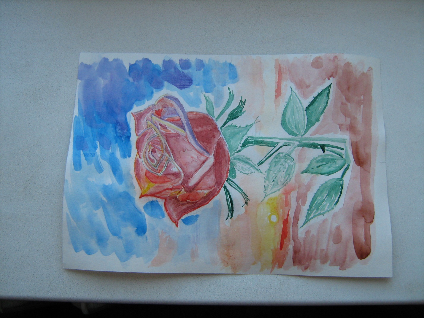 Как продолжение этого умения: "сложный рисунок" (как луг с множеством цветов): прорисовываются ряд цветов выборочно (как бы выглядывающих из общей массы) более или менее равномерно. Затем, цветными пятнами (и тенями) заполняется остальное пространство луга.