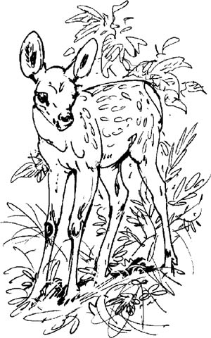 Сейчас усталая мать крепко спала. Бемби тоже было задремал, но вдруг проснулся, полный свежих жизненных сил. Он вскочил на ноги и огляделся. Хижина была погружена в тень, и можно было подумать, что уже наступили сумерки. Лес негромко шелестел. По-прежнему слышался слабый писк синицы, порой высокий хохоток дятла или радостный крик вороны. Но все эти отдельные звуки тонули в большой тишине, объявшей полдневный мир. Если же хорошенько прислушаться, то можно было уловить, как в раскаленном зное кипит воздух. Истомная духота наполняла хижину.