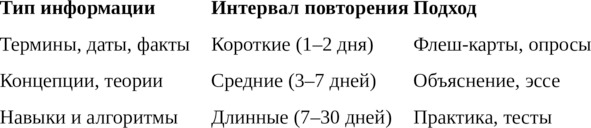 Если вы используете электронные системы (например, Anki, Quizlet или RemNote), они автоматически подстраивают интервалы под ваш уровень запоминания, сокращая время и увеличивая точность.
