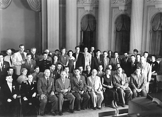 Накануне Олимпийских игр 1952 года лучших мастеров советского спорта в Кремле принимал маршал К.Е. Ворошилов