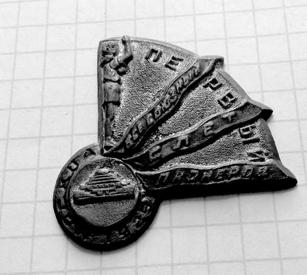 Пионерский значокОн представляет собой изображение пятиконечной красной звезды (символ единства, трудящихся пяти континентов) с профилем В. И. Ленина в центре звезды (знак принадлежности ко Всесоюзной пионерской организации им. В. И. Ленина и верности пионера ленинским заветам), выше верхних лучей звезды пионерский костер с тремя языками пламени (символ единства поколений коммунистов – комсомольцев – пионеров), нижние лучи звезды перевиты лентой со словами «Всегда готов!» (символ готовности пионера к борьбе за дело Коммунистической партии).