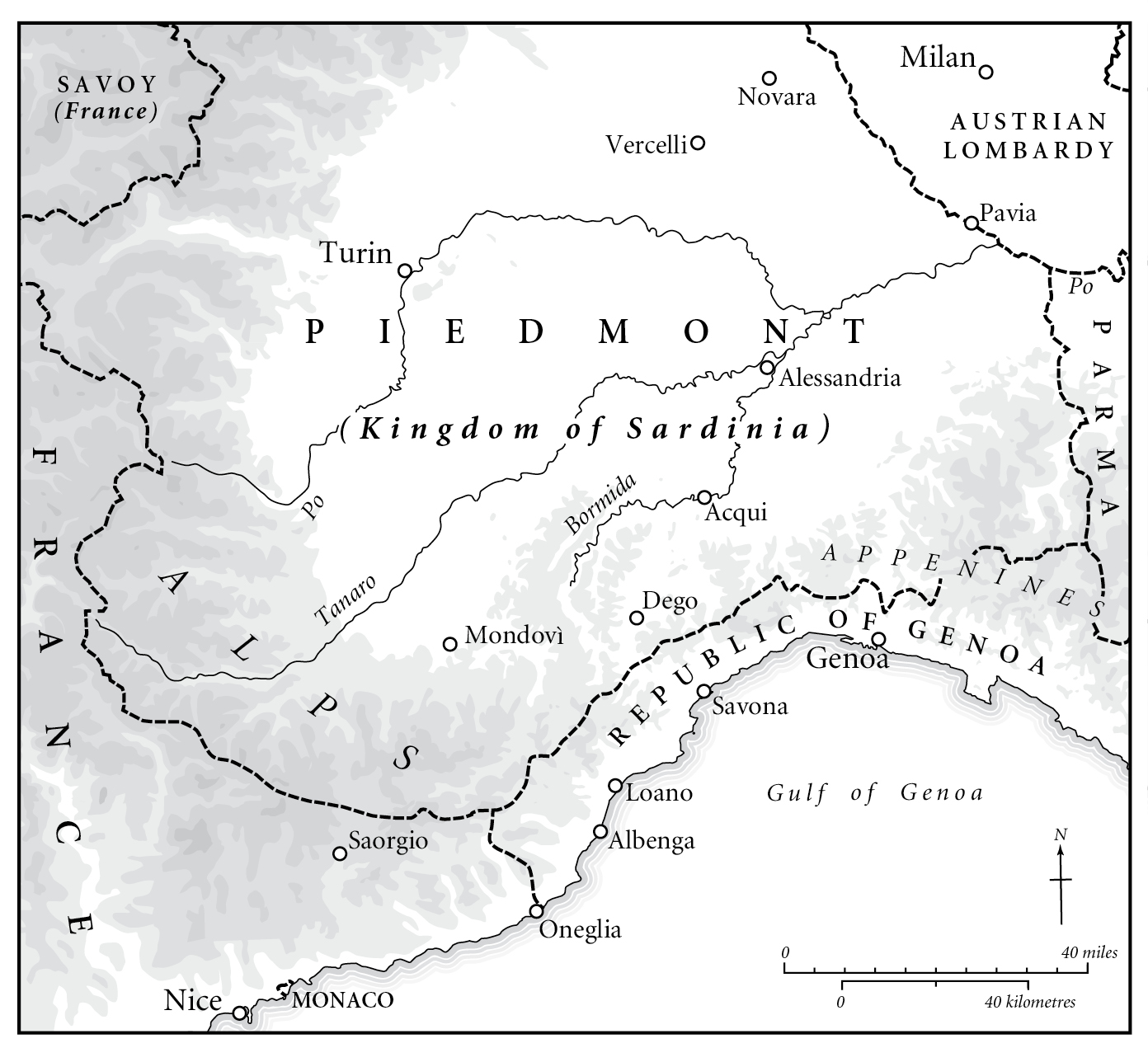 At the beginning of February he was appointed to command the artillery of the Army of Italy, operating against the forces of the King of Sardinia. They had invaded southern France in 1792 but were driven back, following which Savoy and Nice had been incorporated into the French Republic, but they still held the Alpine passes, from which they threatened to recover the lost provinces. The port of Oneglia, a Sardinian enclave in the territory of the neutral Republic of Genoa and the chief link between the king’s island and mainland provinces, was also considered a threat, since it resupplied British warships and harboured corsairs who preyed on French shipping.
