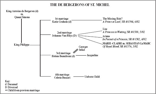 Princess Marie-Claire de Bergeron—third daughter of Philippe de Bergeron, king of St. Michel, a small nation just north of France—squeezed between her two older sisters in order to better view the amazing physique of Sebastian LeMarc: playboy, aristocrat, successful import/export trade businessman. Clutching her sisters’ arms to keep from falling too far back in the crowd, she watched with rapt fascination as he paused in his approach to the seventeenth hole to sign an autograph for a giggly young fan.