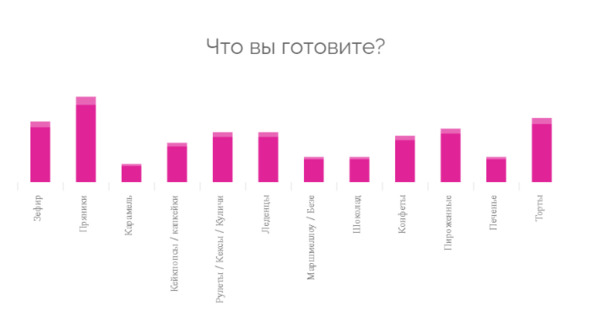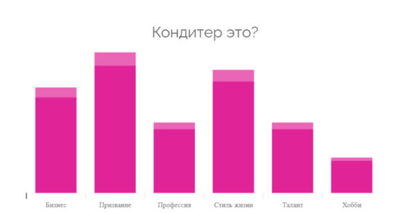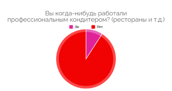Всего в нашем исследовании приняли участие 33 женщины, со средним возрастом 46 лет. Средний опыт в кондитерском деле: 7 лет, а самый опытный кондитер имеет стаж 40 лет! Итак переходим к вопросам и ответам.