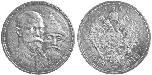 В 1913 году массовым тиражом была изготовлена юбилейная монета – серебряный рубль с изображениями царей Николая II и Михаила Федоровича, помещенными рядом, лицом к лицу. Держава праздновала 300-летие монархического правления Романовых, не зная, что через год грянет Первая мировая, через четыре – Романовы потеряют престол, а через пять – императорская семья подвергнется расстрелу. Никто, ни один человек, не мог вообразить себе, до каких степеней дойдет глумление над родом Романовых после того, как их виднейшие представители будут уничтожены, а их власть – растоптана.