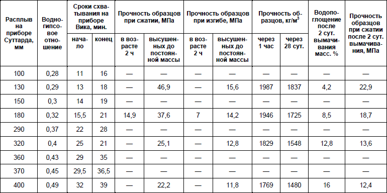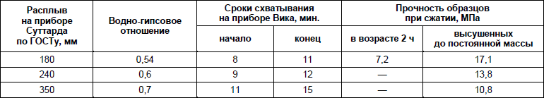 Таблица 2.3. Физико-механические свойства водных растворов гипса марки Г-7